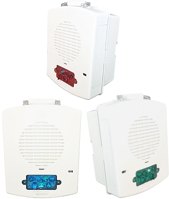 The FHEX Series vibratory horn is designed for use in hazardous locations. The horn produces a loud, distinctive tone by electro mechanical vibration of a stainless steel diaphragm. The horn mechanism and circuitry is contained in a corrosion resistant copper free cast aluminum, explosionproof housing. Wire leads are factory sealed. The horn operates on 24VDC and is polarized for connection to supervised alarm circuits. The wiring conduit is tapped for 3/4” conduit. The horn is listed for indoor or outdoor use and is finished in red powder coat paint.