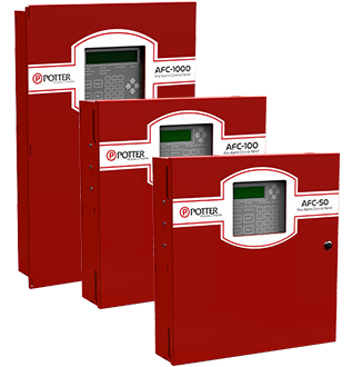 800 Potter AFC Series Fire Alarm Control Panels – Provided distributed protection across each modular container, networked to communicate with a central command unit.